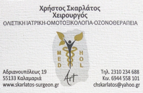 Γενική χειρουργική, λαπαροσκοπική χειρουργική, παθήσεις κοιλίας, θυροειδούς, μαστού, πρωκτού, κηλώνΤέως Διευθυντής Χειρυργικής Κλινικής νοσοκομείου, ολιστική ιατρική, οζωνοθεραπεία, εναλλακτική ιατρικήΚαθημερινά με ραντεβού