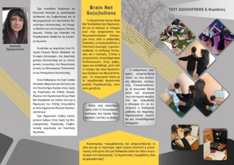 Brain Net So(u)lutions-Υπηρεσίες Ψυχικής Υγείας & Εκπαίδευσης Αναστασία Βαρσαμοπούλου Ψυχολόγος