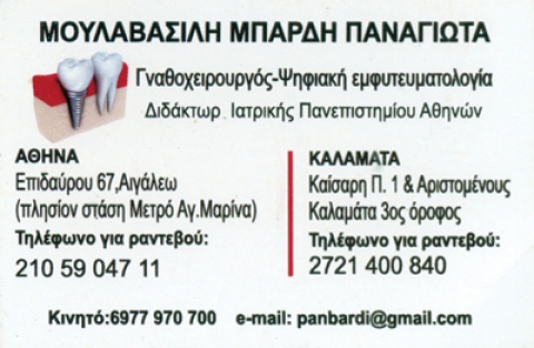 Dr. ΜΟΥΛΑΒΑΣΙΛΗ ΜΠΑΡΔΗ ΠΑΝΑΓΙΩΤΑ