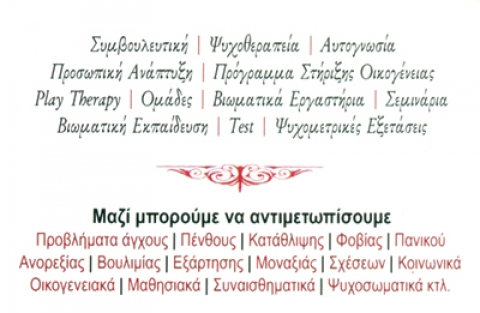 Το Εργαστήρι επίσης δραστηριοποιείται στο χώρο της συμβουλευτικής και της ψυχοθεραπείας. Έτσι απευθύνεται και στο ευρύτερο κοινό προσφέροντας δυνατότητες για βιωματική μάθηση, αυτογνωσία, προσωπική ανάπτυξη, ψυχοκοινωνική υποστήριξη και θεραπεία.