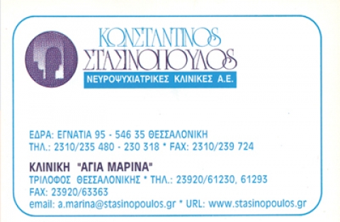 Κλινική "Άγιος Γεώργιος": Πανόραμα, Θεσσαλονίκη. Τηλ: 2310341262, Φαξ: 2310341209 Κλινική "Άγιος Αντώνιος": Τρίλοφος, Θεσσαλονίκη. Τηλ. & Φαξ: 2392061230 Κλινική "Αγία Μαρίνα": Ροδίτης Κομοτηνής. Τηλ: 2531060001, Φαξ: 2531060005 Μονάδα αποκατάστασης & αποθεραπείας "Άγιος Γεώργιος": Ροδίτης ΚομοτηνήςS