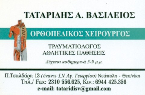 Ταταρίδης Α. Βασίλειος - Ορθοπαιδικός/Τραυματιολόγος